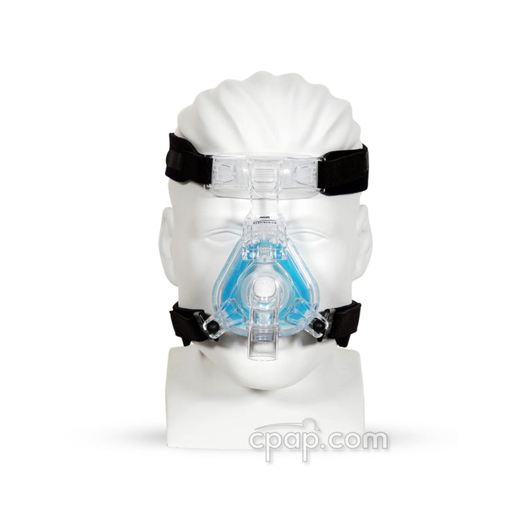| Materials | of ComfortGel Blue Nasal CPAP Mask with Headgear Faceplate: Polycarbonate Gel Cushion: Urethane Gel; EVA Gel Cushion Outer Shell: Urethane Film Outer Flap: Silicone Forehead Cushion: Silicone Exhalation Elbow and Swivel: Polycarbonate Elbow Split Washer: Polycarbonate Forehead Support Arm and Bracket: Polycarbonate Headgear Clips: Thermoplastic Polyester Elastomer Headgear (Premium): UBL; Urethane Foam; Lycra |
