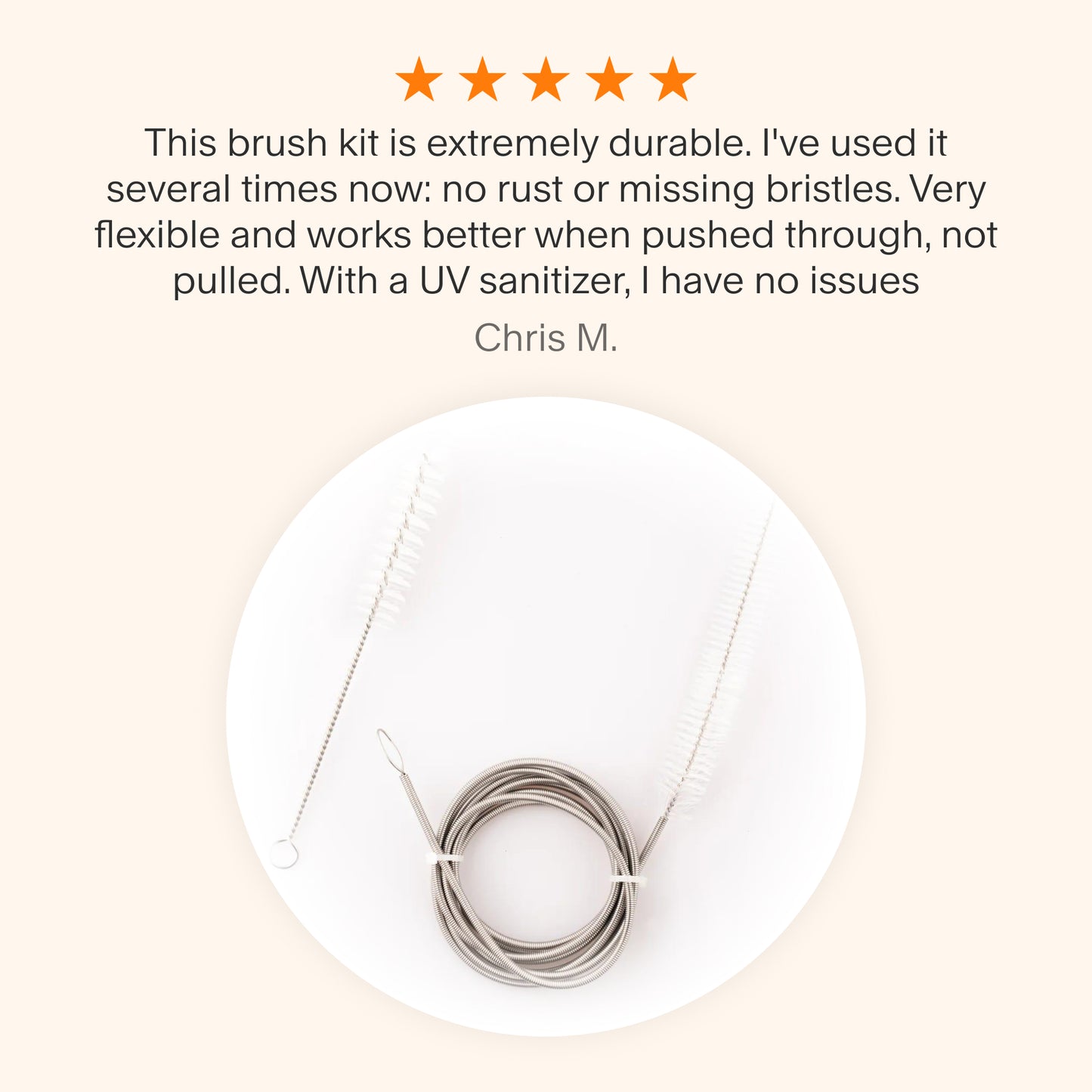 This brush set includes a flexible CPAP tube brush spanning an impressive 84 inches and a secondary, 7-inch handy brush tailored for cleaning the connection points of your mask and tube. Both brushes accommodate all standard 19mm tubing diameters and masks.