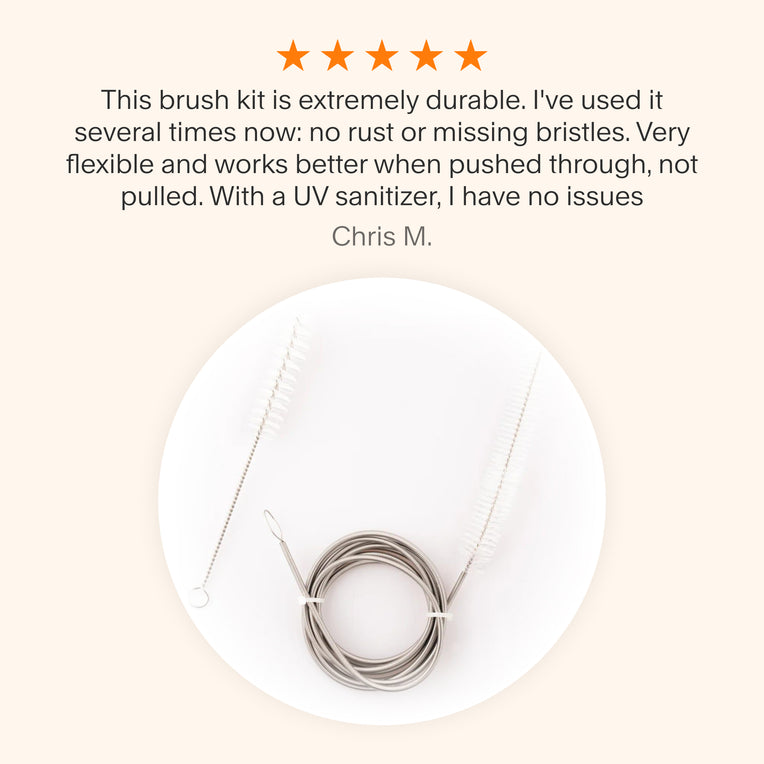 A tube brush is the only way to clean the inside of your CPAP hose, which is why you need a brush you can count on. Snugell's Tube Brush Kit is firm yet flexible, allowing you to easily push all the way through your tubing while easily navigating bends. Detail your connection cuffs and mask connection with the 7" handy brush for a spotless clean, every time.