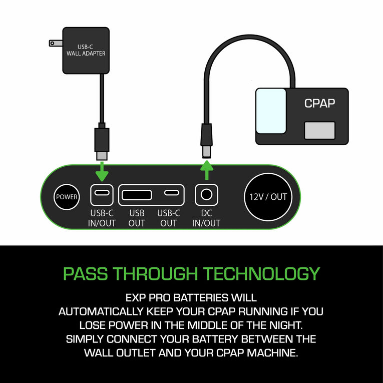 • USB outputs (incl. USB-C): top-off phones and tablets while your CPAP runs