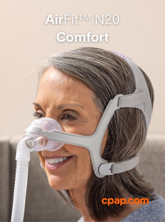 Struggling with mask leaks, red marks, or a bulky fit? The ResMed AirFit N20 Nasal CPAP Mask pairs a flexible frame with the InfinitySeal cushion to adapt to your face and maintain a steady seal. A clear field of view and QuietAir venting help you settle in and sleep without distraction.