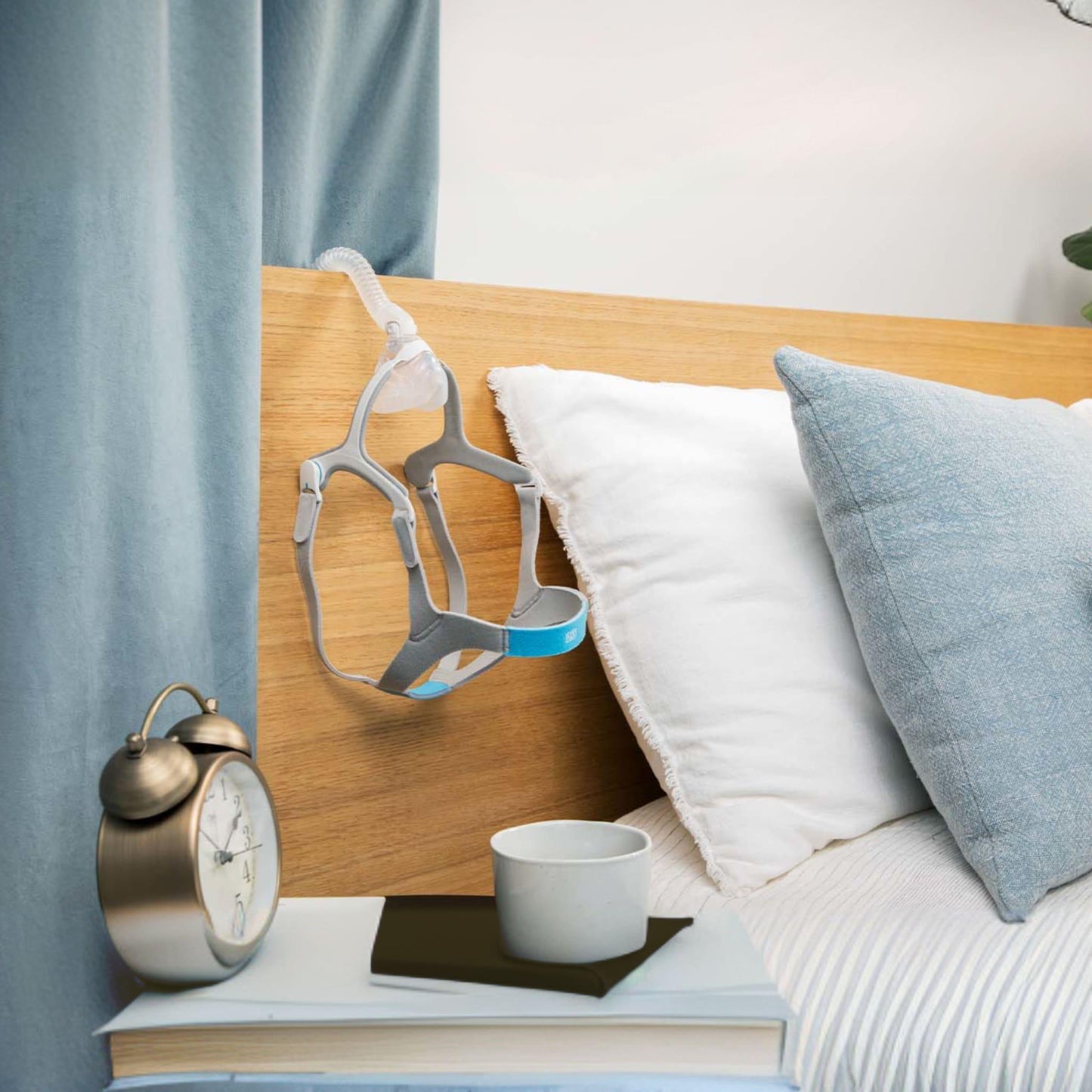 Frequent nighttime bathroom trips are no problem with the AirFit N20. The convenient self-guiding magnetic clips make it easy to put on and take off, while the quick-release elbow allows for easy disconnection from the machine without removing the mask.