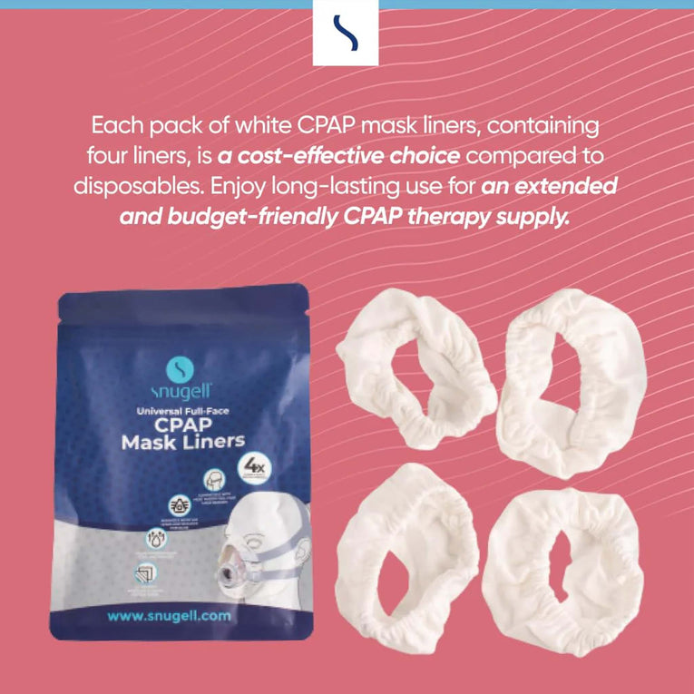 Snugell’s Universal CPAP Mask Liners are designed to fit most full-face and Nasal CPAP masks, reducing airflow leaks and noise for a restful night’s sleep.