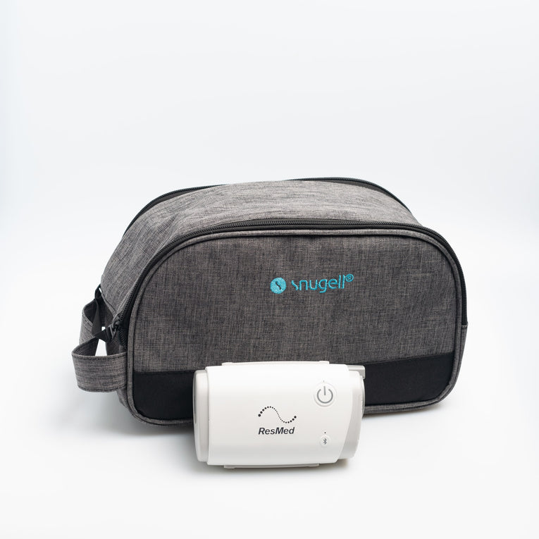 Snugell’s Travel CPAP Carrying Bag offers a tailored fit for the AirMini CPAP Machine, keeping it and its accessories neatly organized and secure. Perfect for travel, its compact, lightweight design fits easily in luggage, while the durable gray canvas and padded interior provide reliable protection. With smartly designed compartments for the machine, tube, mask, and cables, plus a zippered front pocket for essentials like your passport and phone, this bag ensures everything you need is close at hand. Note: Bag only—AirMini and accessories are not included.